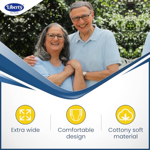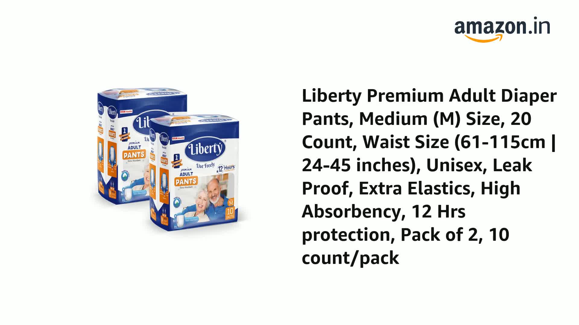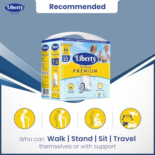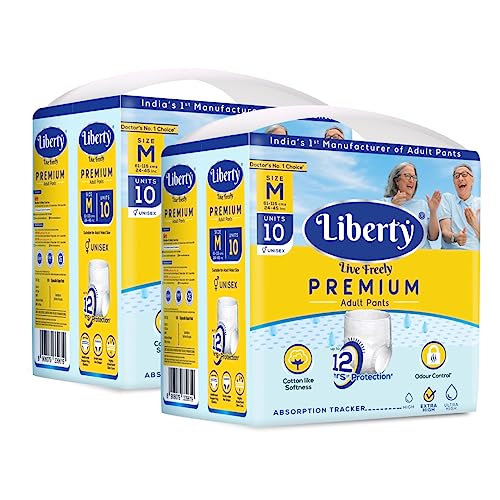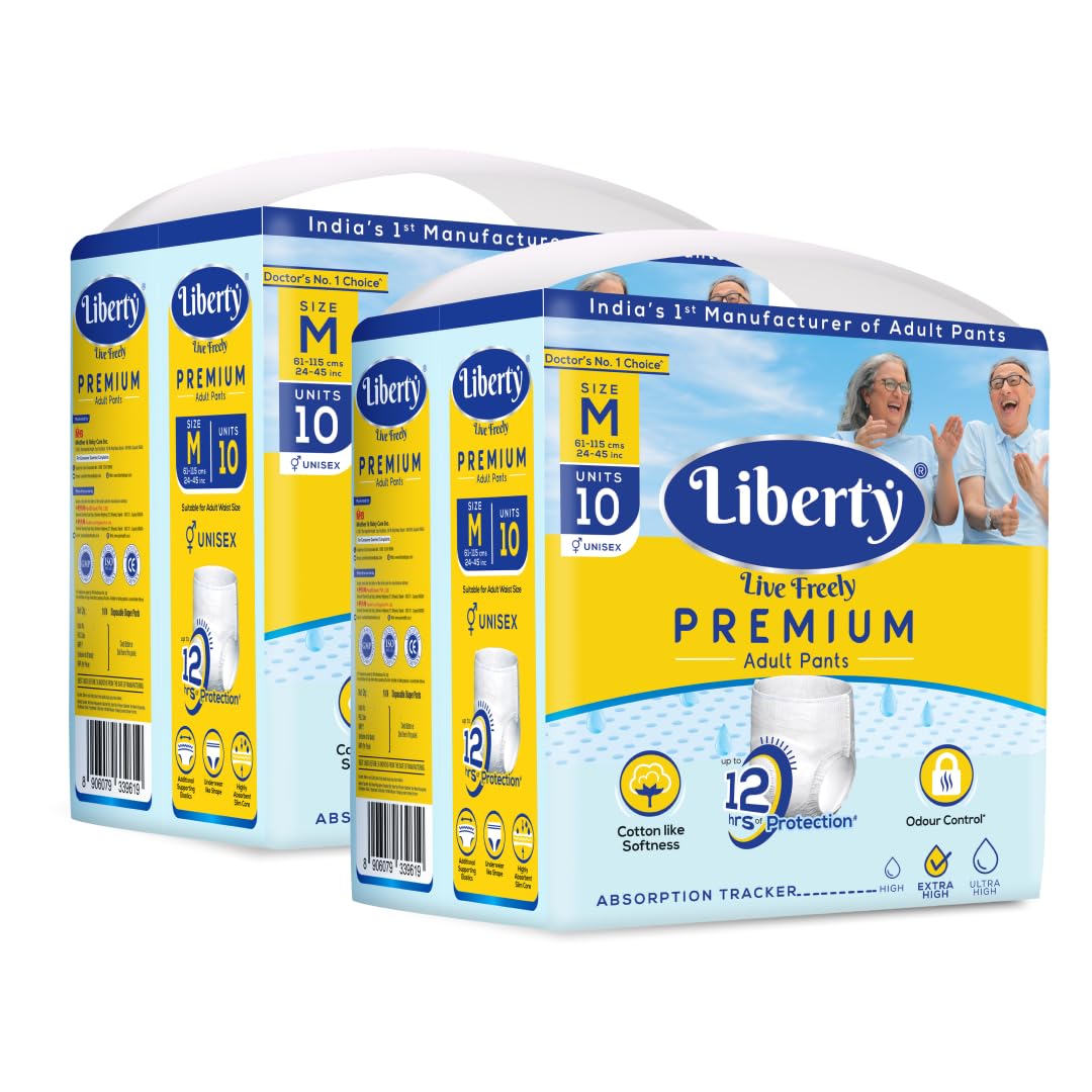 Liberty Premium Adult Diaper Pants, Medium (M) Size, 20 Count, Waist Size (61-115cm | 24-45 inches), Unisex, Leak Proof, Extra Elastics, High Absorbency, 12 Hrs protection, Pack of 2, 10 count/pack