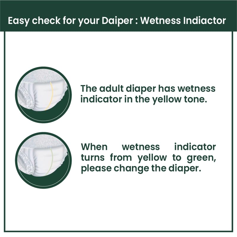 When indicator coding turns from yellow to green please change the diaper.Ideal for: Adults facing difficulty in mobility incontinence and travelling long distances.