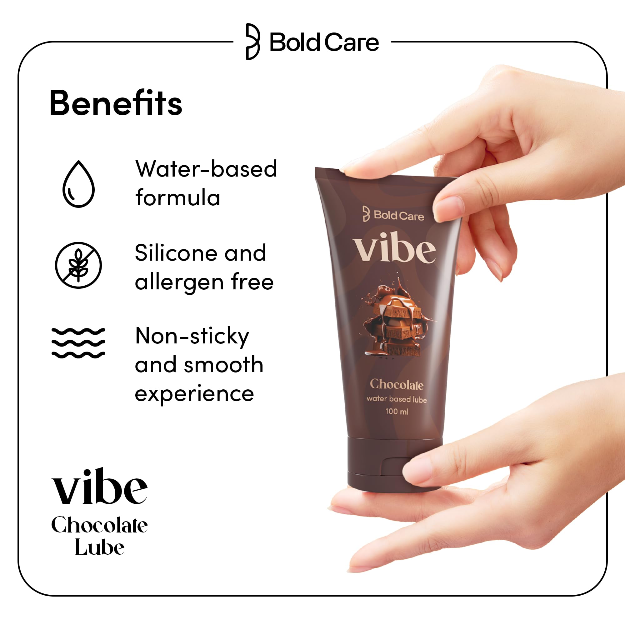 Bold Care Vibe - Natural Personal Lubricant for Men and Women - Premium Chocolate Flavour - Water Based Lube - Skin Friendly Silicone and Paraben Free - No Side Effects - 100 ml