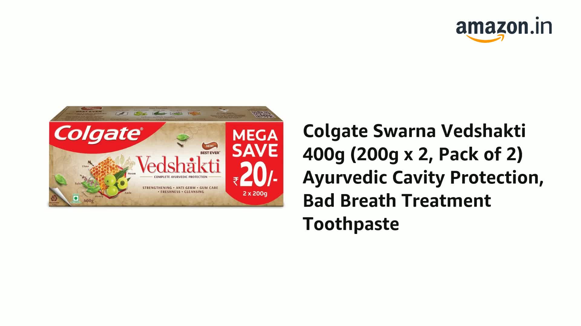 Experience the power of nature with Colgate Vedshakti Toothpaste a unique blend of five potent ingredients: neem clove amla tulsi and honey. Each ingredient is carefully selected for its traditional benefits offering a holistic approach to oral hygiene. Neem provides advanced gum care clove strengthens your teeth amla boosts oral condition with its rich Vitamin C content tulsi refreshes your breath and honey adds a touch of natural sweetness while helping to soothe your gums. This Vedshakti toothpaste offers anti-germ protection and gum care helping to fight germs in your mouth and stop them from entering your body*. Colgate Vedshakti Toothpaste offers strengthening anti-germ protection gum care freshness and cleansing all in one. Its vegetarian gluten-free and certified by the Indian Dental Association ensuring trusted oral care for your family. Crafted with a refreshing formula this neem toothpaste 200g ensures freshness and strong teeth. Manufactured in India this Colgate toothpaste supports environmental responsibility with True Zero Waste Platinum Certification. Whether you're looking for comprehensive gum care anti-germ protection or simply a toothpaste that offers a refreshing experience with the power of nature Colgate Vedshakti is your ideal choice. (*with twice daily brushing)
