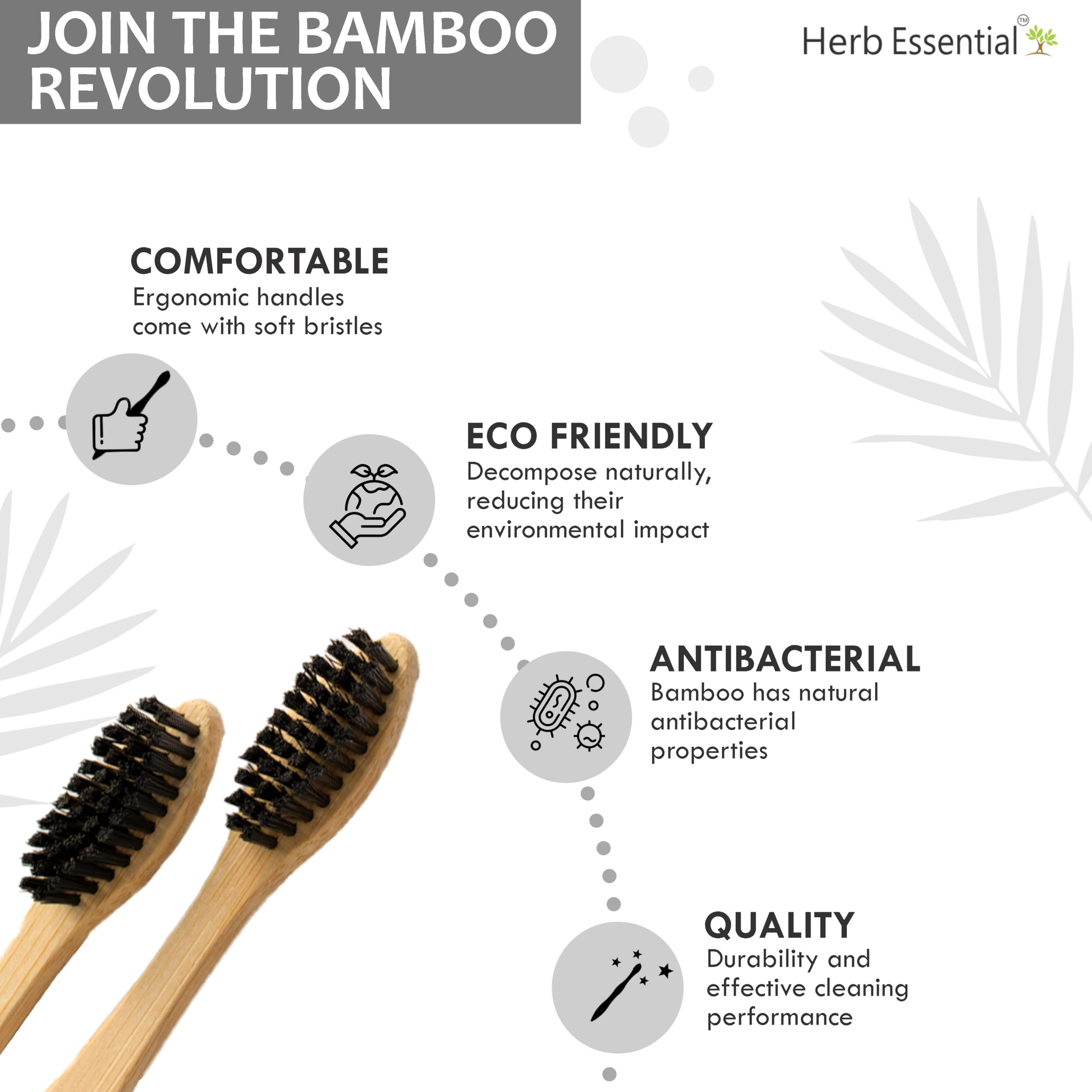 Herb Essential Bamboo Toothbrush Pack of 6 | with Ultra-Soft Charcoal activated Bristles | Natural Biodegradable and Ecofriendly Toothbrush Manual Adult