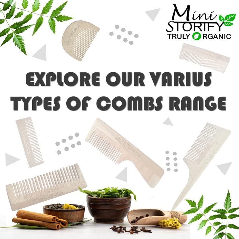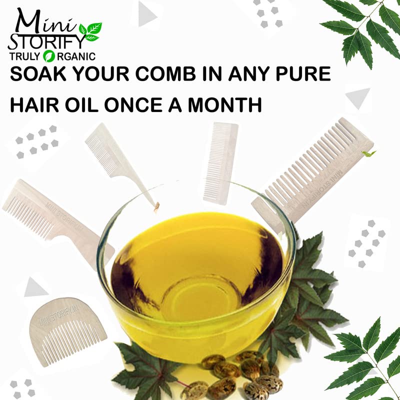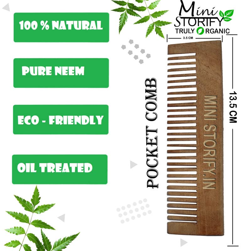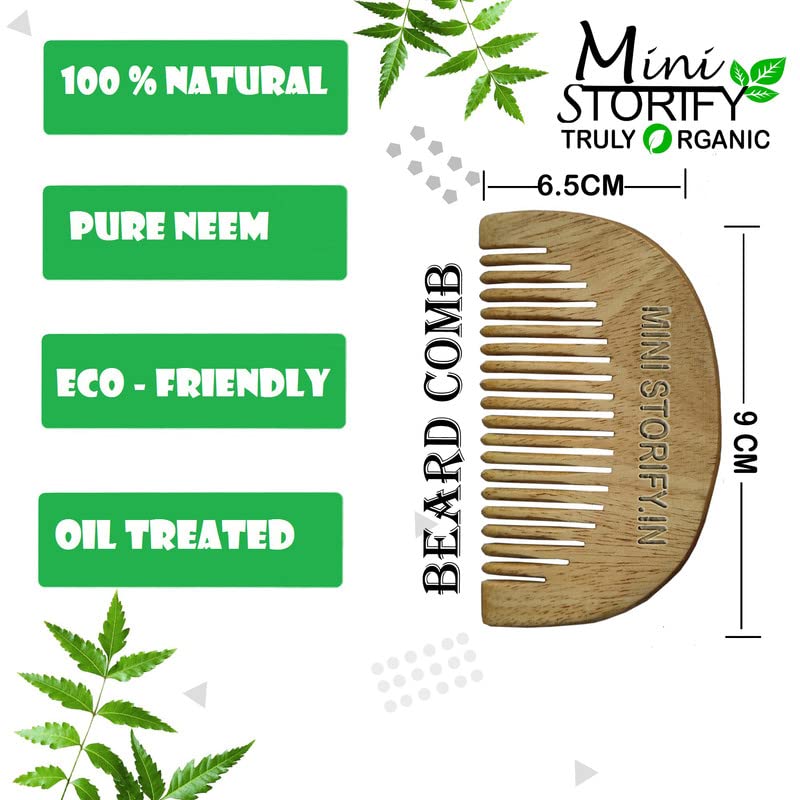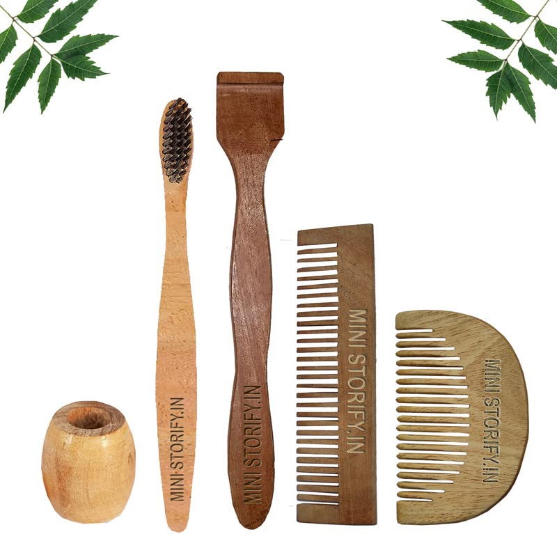 Mini Storify Truly Organic 1 Neem Beard Comb 1 Neem Pocket Comb |1 Neem toothbrush|1 Neem Tongue Cleaner|1 Bamboo brush stand Pack of 5