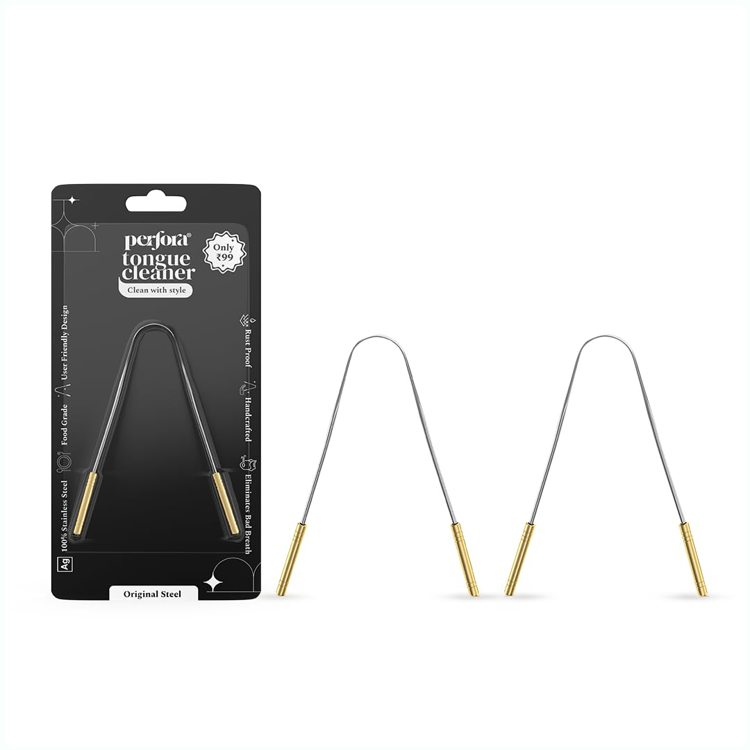 Perfora Silver Steel Tongue Cleaner For Men And Women | For Fresh Breath Improved Taste Sense & Bacteria Removal | Pack of 2