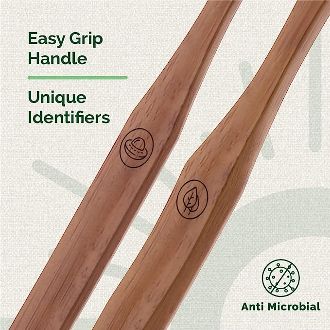 Teeth-a-bit The Pledge Toothbrush brings to you Indias largest home-grown wooden toothbrush portfolio. The Pledge toothbrush has been custom designed with highest quality neem for Adults (13+ Years). Our neem toothbrush features BPA-free, soft, dentist designed bristles which are gentle on your enamel and gums and tough on plaque and bacteria. The toothbrush has been designed by dentist with a slim handle in a flat silhouette configuration that is lightweight yet sturdy for better handling and gripping. Each toothbrush handle features unique identifiers to keep your brush distinguishingly yours, designed in-house by our team of experts matched to 4 pledge worthy themes - Forest Green, Ocean Blue, Space Black and Love Pink. The Pledge Toothbrushes are made from salvaged firewood Neem that is known to be therapeutic and anti-microbial for your teeth. Neem is naturally fragrant, splinter free and waterproof to add spice to your oral care routine. We have chosen to be part of the solution, not part of the plastic pollution. The Pledge Neem Toothbrushes get a high Earth Score of 96%, an in-house algorithm that ranks products for their positive environmental impact. Each of our neem toothbrush saves 20 grams of plastic going into our pristine oceans, forests and landfills.