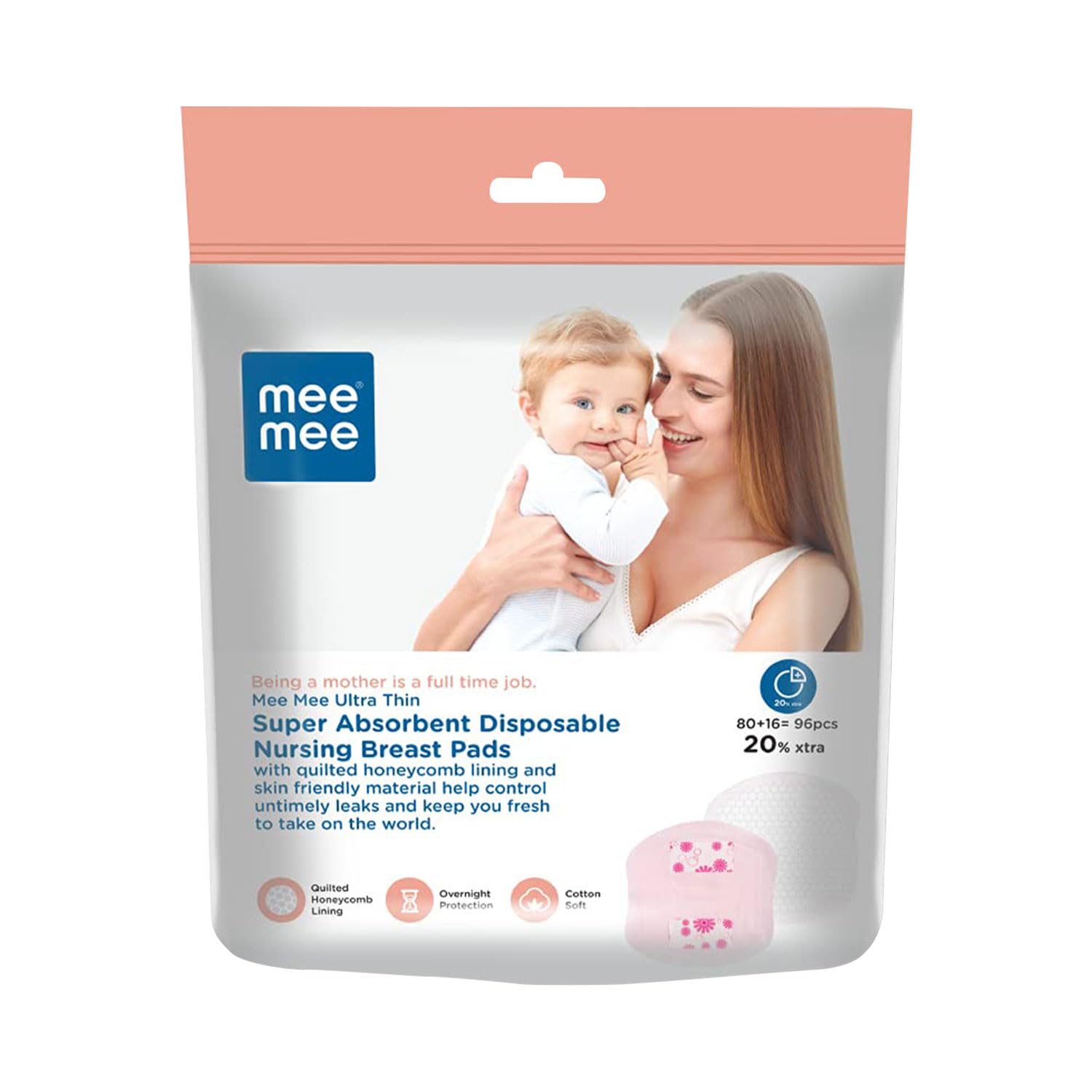 Mee Mee's Ultra Thin Super Absorbent Disposable Nursing Pads you can stay fresh and comfortably clean. The pad has a contoured shape with multiple layers that have unique moisture channels. The silky soft top-sheet has a one-way flow barrier that traps the leaks leaving your skin dry and clean.