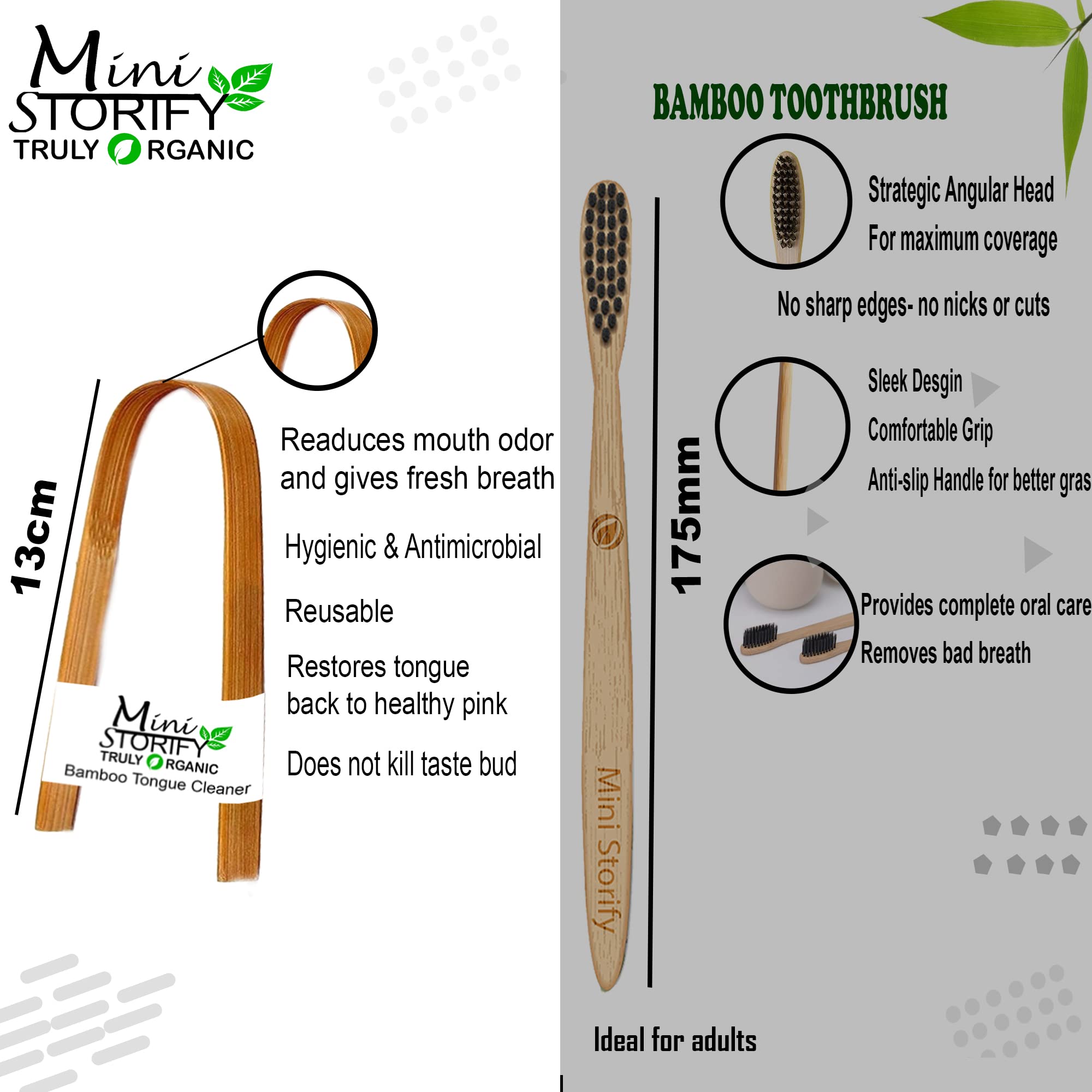 Mini Storify Truly Organic 4.Bamboo Cotton ear bud1.bamboo toothbrush,,1.bamboo Tongue cleaner,2.Loufah Sponge 4.Bamboo Straw (8") (PACK-12)