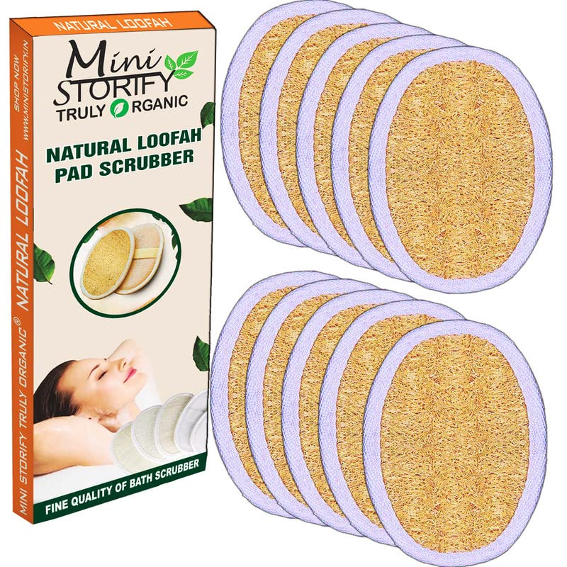 Mini Storify Truly Organic Natural Oval Loofah Body Scrubber - Pack of 10 Organic Loufah/Loofa Sponge Pads for Body Scrubbing & Bathing