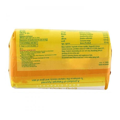 Use this body Cleanser (Soap) to have all the good properties of turmeric, sandalwood and other herbals and have a glowing skin. Excellent healthy products for the protection of body,skin and hair. The beauty products are not only to look good but a strong medium to protect skin, making the body healthy, pure and clean. The beauty products available in the market though, give feel-good but actually they are serious threat to the body. These products have several disastrous chemicals and ingredients, which pose serious threat to the human system. Keeping all such facts in mind, Divya Pharmacy and Patanjali Ayurved have started a series of shampoos, soaps and tooth pastes and powder, which are prepared of healthful and qualitative herbal ingredients so that the people could take advantage of herbal cosmetics, prepared with ayurvedic herbal products.* Acne* Pimples* Fungal infections* Wrinkles* Dryness* RoughnessHaldi, Sudha Suhaga, Neem, Amahaldi, Giloy, tulsi, Manjeeth, Amla.