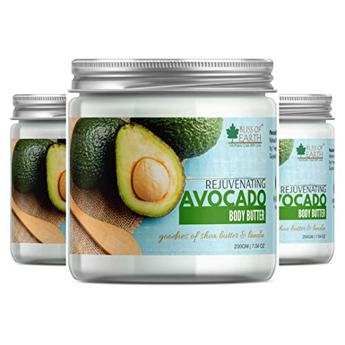 Add an extra dose of pleasure to your daily care rituals with Bliss of Earth Avocado Body Butter a nourishing long lasting butter ideal for use on specific areas or to moisturize the entire body. Our body butterocreamy texture and juicy aroma makes it simply irresistible. It is an irreplaceable product after showering as it provides superior miniaturization for up to 24 hours and leaves your skin feeling vitalized fresh and healthy. Our vitamin-enriched formula for the body promotes cell regeneration and helps preserve skinoelasticity. Avocado body butter is especially recommended for mature and tired-looking skin.