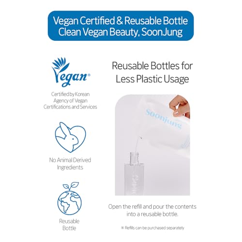 Experience the soothing embrace Korean Skincare with SoonJung pH 5.5 Relief Toner your ultimate solution for sensitive and irritated skin. Delicately formulated to address the needs of even the most delicate skin types this low-irritant weakly acidic toner is designed to alleviate the discomfort caused by external triggers. Crafted as a sanctuary for sensitive skin Korean skin care toner is enriched with the potent Panthensoside⢠blend where the synergy of Panthenol and Madecassoside works wonders. Panthenol known for its prowess in bolstering the skin's natural barrier and soothing dryness teams up with Madecassoside a guardian angel that calms irritation and shields against external aggressors. This dynamic duo delivers ingredient-specific efficacy that your skin truly deserves. Balanced at a skin-friendly pH level of 5.5 korean skin care toner not only brings relief but promotes healthier skin with every application. Immerse yourself in the luxurious sensation of deep hydration as the toner's composition boasts an impressive 98.3% of moisturizing ingredients. Its lightweight water-based formula ensures swift absorption leaving your skin feeling refreshed and invigorated. Elevate your skincare routine with confidence knowing that SoonJung pH 5.5 Relief Toner. It's meticulously crafted without the presence of 10 FreeClean ingredients including animal-derived ingredients mineral oil polyacrylamide imidazolidinyl urea triethanolamine synthetic pigment silicone oil parabens fragrance and PEG surfactants. Nurture your skin back to tranquility and radiance with SoonJung pH 5.5 Relief Toner. Unveil the secret to calm balanced and deeply moisturized skin â because you deserve nothing less than a clean soothing indulgence. Best to be paired up with Soon Jung SoonJung 10 Free Moist Emulsion for intense moisturization post SoonJung pH 5.5 Relief Toner.