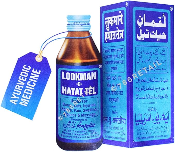Lookman E Hayat Ayurvedic Oil 200 ML (6.76 fl. oz), Useful in Burns, Cuts, Injuries, Sprain, Pain, Swelling, Wounds & Massage