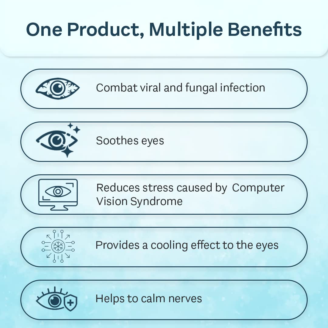 Unique and perfect blend of nature's most efficacious ingredients contaning an extraordinary combination of Triphala Nimb bark Tulsi Punarnava etc. Peppermint and Kapoor provide cooling effect to eyes