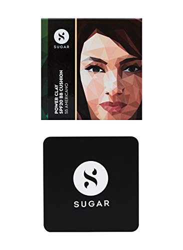 The beauty equivalent to the best and premium delicacies around the world - SUGAR Power Clay SPF20 BB Cushion has arrived. Super lightweight and improves complexion evenness as well as minimizes the appearance of fine lines and pores, this plush product not only provides light to medium buildable coverage but settles to a silky matte finish which does not oxidize over time. Not just that, this paraben and fragrance free wonder is oil-controlling and increases makeup longevity. Enriched with SPF20, it provides complete UVA/UVB Broad Spectrum protection. Its hydrating, non-greasy formula helps absorb excess sebum throughout the day for a refreshed complexion. The ingredient Bentonite clay unclogs pores & shrinks them. Specially created keeping in mind the Indian weather, this product suits all skin types.55 AMERICANO is a medium-deep shade with warm undertone.