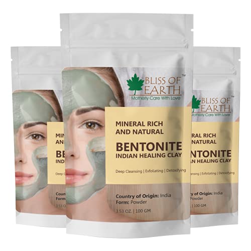 Bliss of Earth 100% Pure Bentonite Clay Powder | 3x100GM | Indian Healing Clay | Natural Detoxifying Healing Facial Mask To Exfoliate and Deep Pore Cleansing | Remove Excessive Oil |