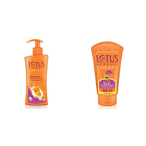 Lotus Herbals Safe Sun UV-Protect Body Lotion For Dry Skin 250 ml And Lotus Herbals Safe Sun Kids Sun Block Cream SPF 25 100g