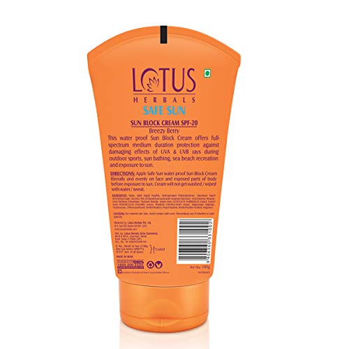 Lotus Herbals Safe Sun Kids Sun Block Cream SPF 25 100gThe only sun block cream in India specially formulated for young & delicate skin kids sun block cream SPF-25 contains extracts of chamomile flowers for soothing and nourishment of a child's skin. Provides complete UVA & UVB protection for tan & sun burn prevention. Tested for use by pediatricians & dermatologists.