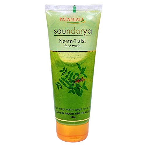 Patanjali saundarya neem-tulsi face wash is a soap-herbal formulation. It's gentle cleansing action helps to control moisture and natural balance of skin. Neem and tulsi kills germs while honey and aloe vera moisturize and rejuvenate the skin tissues to make complexion fresh smooth and beautiful. It also helps to prevent pimples and makes skin radiant.