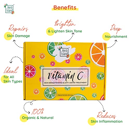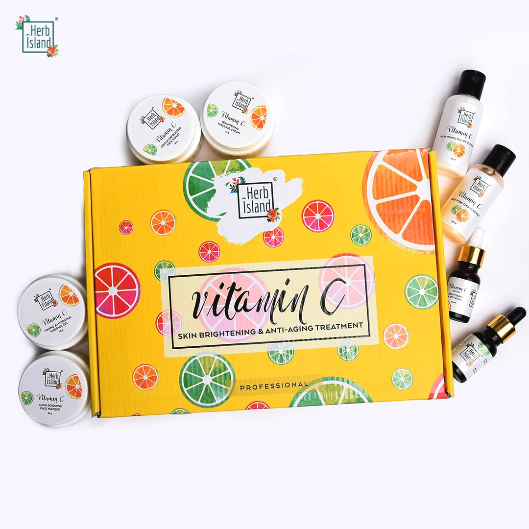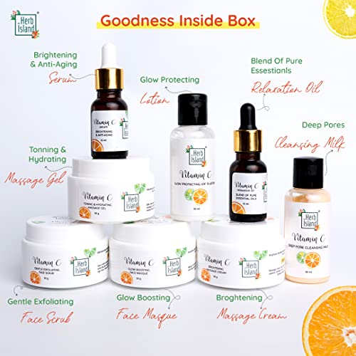 Herb Island Vitamin C Facial Kit | All Day Glow Vitamin C Routine l Clean & Brighten Skin | Oil Free Look | Instant Glow with 99% active Vitamin C for Skin Brightening and Anti-Aging Treatment Sulfate and Paraben-Free (Total 8 Products)