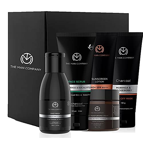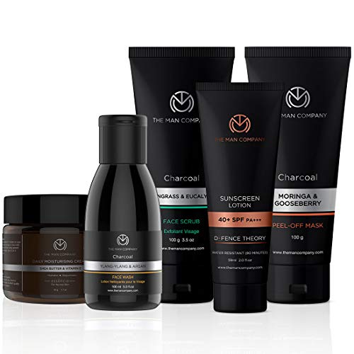 The Man Company Total De-Tan Regime | Charcoal Face Wash Face Scrub Peel Off Mask Daily Moisturising Cream Sunscreen Lotion SPF 40+ | Cleansing Nourish Sun Protection