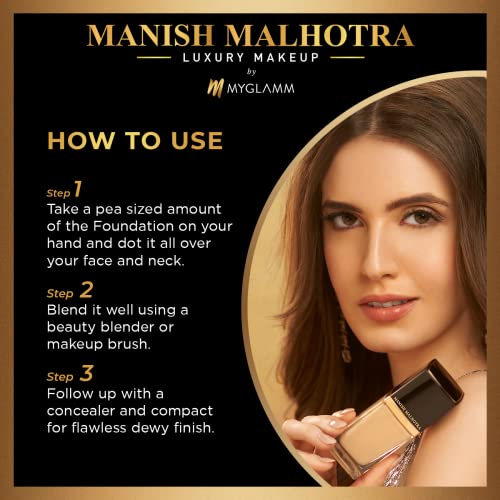 Get a luminous spotlight-worthy base with this foundation from the Manish Malhotra Skin Awakening Range. Non-irritating soft-focus long-wear formula comes with medium-to-high coverage for an all-occasion-ready even-toned complexion. Enhanced with Vitamin C enriched Italian Red Orange Extracts to protect skin from free radical damage thus minimising signs of ageing. This liquid foundation is formulated with glow-igniting gold for instant radiance. Available in 15 shades to flatter all Indian skin tones. So #AceYourBase and be ready to get showered with compliments everywhere you go!