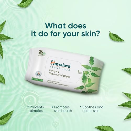 Cleansing your face can be a challenge while you are on the go. No matter where you are enjoy a fresh look in just a minute. Himalaya purifying neem facial wipes cleanse your face and are infused with the goodness of neem and turmeric to help keep your skin clean pure and fresh. Our facial wipes are your convenient makeup removal solution. At home or on the go taking off makeup requires extra cleansing help. Now get a quick and easy fix with the gentle and effective cleansing of Himalaya purifying neem facial wipes. Himalaya purifying neem facial wipes are soft do not contain alcohol and help keep the skin clean and fresh. Easy to open and reseal packaging ensures that the moisture and freshness stays use after use.
