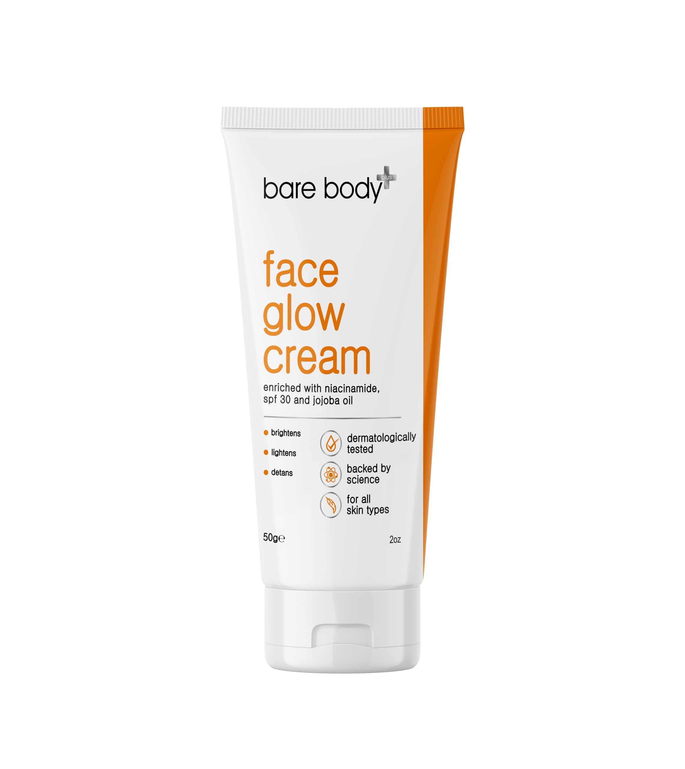 Bare Body Plus Face Glow Cream Dermatologically Approved With SPF 30 Lighten and Brighten s Spots Fine-lines and Wrinkles 50gm
