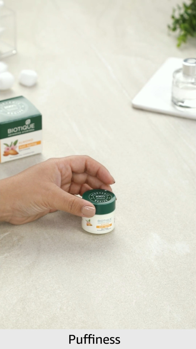 Biotique Anti-Ageing Eye Cream is an Ayurvedic blend of 100% botanical extracts. This eye cream works tirelessly to smooth away wrinkles dry lines dark circles and puffiness revitalizing your eye area and adding a touch of sparkle to your eyes. This anti-ageing eye cream works its magic by instantly brightening and lightening delicate eye contours. With the potency of natural ingredients it effectively smooths away dark circles wrinkles and puffiness leaving your eye area refreshed and rejuvenated. This under-eye cream enriched with the goodness of almonds nutmeg and sunflower oil works wonders reducing signs of ageing pigmentation and skin scarring. It helps with the disappearance of wrinkles as they are lightened and brightened unveiling a fresh and youthful appearance. Our eye cream for dark circles is formulated with 100% natural botanical extracts and is completely free from harmful chemicals. Dermatologically tested to suit all skin types it guarantees a safe and gentle skincare experience for regular use. It is easier to embrace its efficacy with a simple and effective application method. Gently pat the cream around the eye area allowing its nourishing properties to penetrate deeply