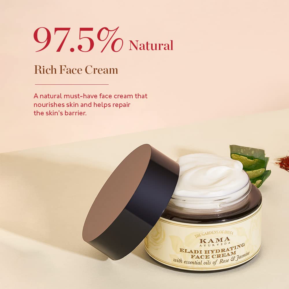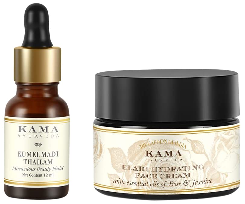 Kama Ayurveda Kumkumadi Miraculous Beauty Ayurvedic Night Serum 12ml & Kama Ayurveda Eladi Hydrating Ayurvedic Face Cream with Pure Essential Oils of Rose and Jasmine 25g