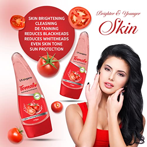 LA Organo Aloevera Gel & Tomato Hydrating Soothing Gel for Skin Nourish Clarifying & Vitalizing (Pack of 2) 240 g