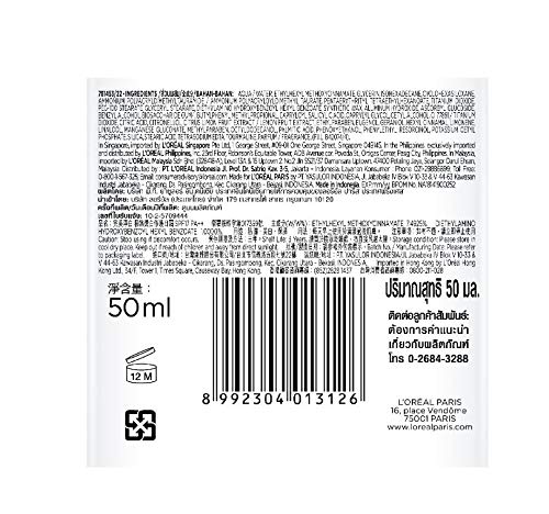 Size:50ml|Design:Day CreamL'Oreal Paris White Perfect Day Cream and face moisturizer is a non-greasy anti-spot skincare solution that is enriched with brightening elements that enhance skin radiance and provide UV protection. INGREDIENT: AQUA / WATER ETHYLHEXYL METHOXYCINNAMATE GLYCERIN ISOHEXADECANE CYCLOHEXASILOXANE AMMONIUM POLYACRYLDIMETHYLTAURAMIDE / AMMONIUM POLYACRYLOYLDIMETHYL TAURATE PENTAERYTHRITYL TETRAETHYLHEXANOATE TITANIUM DIOXIDE PEG-100 STEARATE GLYCERYL STEARATE DIETHYLAMINO HYDROXYBENZOYL HEXYL BENZOATE SYNTHETIC WAX ALUMINUM HYDROXIDE ASCORBYL GLUCOSIDE BIOSACCHARIDE GUM-1 CAPRYLOYL SALICYLIC ACID CAPRYLYL GLYCOL CETYL ALCOHOL CI 77891 / TITANIUM DIOXIDE CITRIC ACID CITRUS LIMON FRUIT EXTRACT / LEMON FRUIT EXTRACT ETHYLPARABEN MANGANESE GLUCONATE METHYLPARABEN OCTYLDODECANOL PALMITIC ACID PHENOXYETHANOL PHENYLETHYL RESORCINOL POTASSIUM CETYL PHOSPHATE SILICA STEARIC ACID TETRASODIUM EDTA TOURMALINE PARFUM / FRAGRANCE INCLUDING / DONT (*) : BENZYL ALCOHOL BUTYLPHENYL METHYLPROPIONAL CITRONELLOL EUGENOL GERANIOL HEXYL CINNAMAL LIMONENE LINALOOL