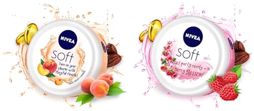 NIVEA Soft Light Moisturizer 100ml | Playful Peach | For Face Hand & Body Instant Hydration | Non-Greasy Cream | With Vitamin E & Jojoba Oil | All Skin TypesTreat your skin to the gentle care of NIVEA Soft Light Moisturising Cream. Its quick absorbing formula is highly effective for everyday use.The non-greasy formula with vitamin E and Jojoba oil gives happy refreshed skin throughout the day in all seasons.The unique fresh fragrance of Peach blends in the light refreshing texture.Turn on your charm with NIVEA Soft Playful Peach!Nivea Soft Berry Blossom Light Moisturizer For Face Hand & Body Instant Hydration Non-Greasy Cream With Vitamin E & Jojoba Oil 100mlEnriched with jojoba oil and vitamin e Nivea soft is a non-greasy moisturizing cream that refreshes your skin making it smooth soft supple and healthy. The light texture and fast-absorbing formula make it spread easily on your skin with just one application. It is highly effective on face hands and body. This all purpose cream is specially made to care for all skin types in all seasons.