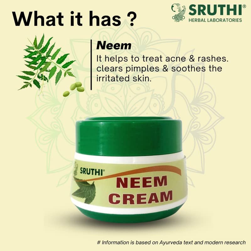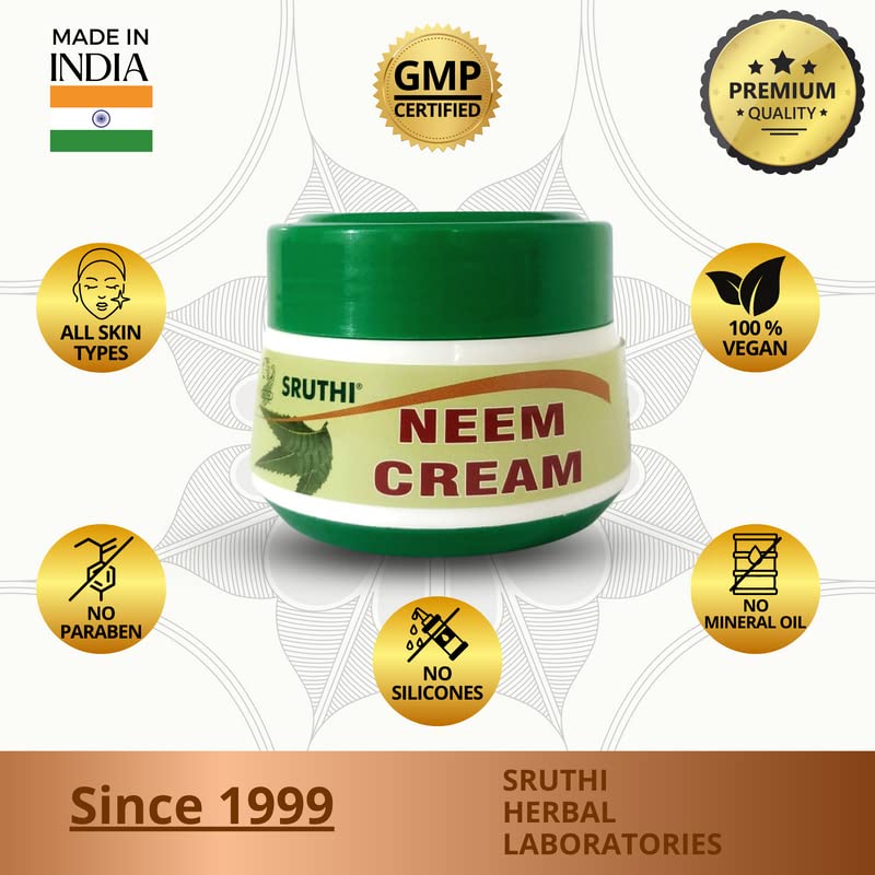 Direction to use: Apply Sruthi Neem Cream gently over face neck hands and legs daily after cleansing. For best results use daily.