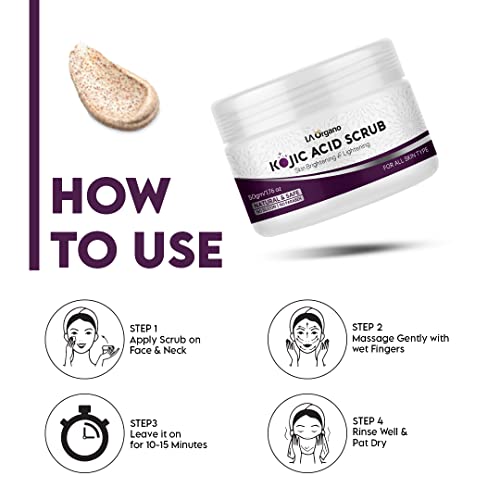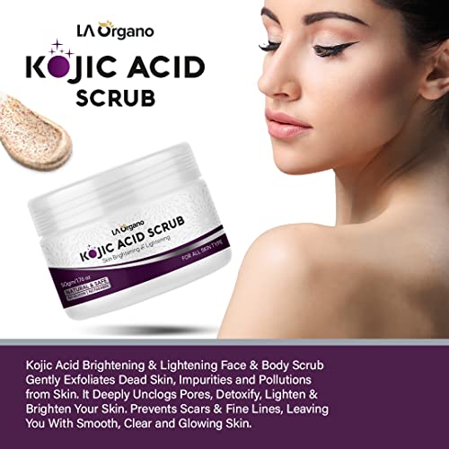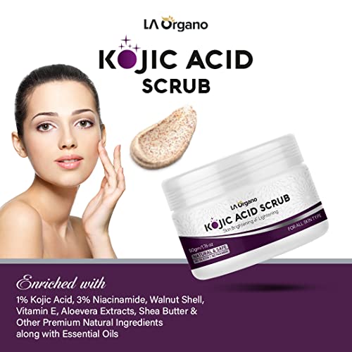LA Organo 1% Kojic Acid Skin Lightening & Brightening Face & Body Scrub Exfoliates Dead Skin Impurities & Pollutions from Skin (Pack of 2) 100 gm