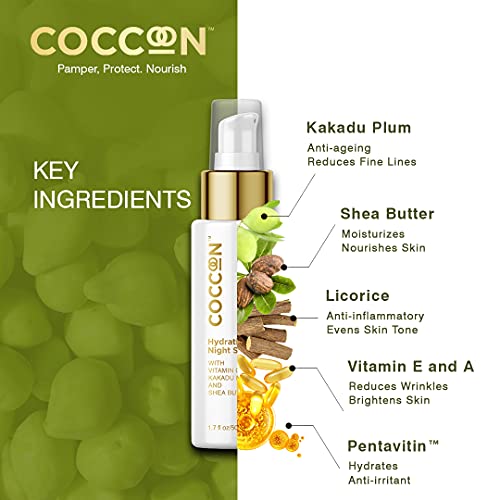 Coccoon Hydrating Night Face Serum For Dark Spot Reduction Brightening and Anti-Ageing Skin Repair with Vit C & Shea Butter|All Skin Types 50g