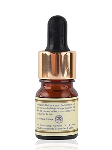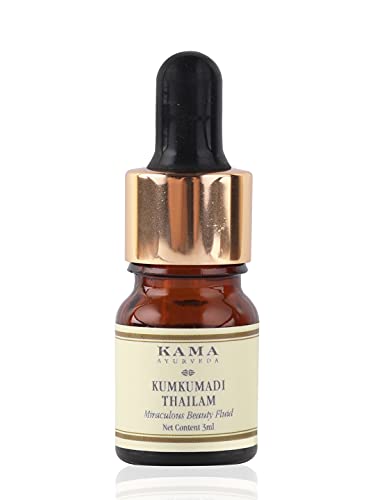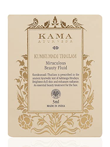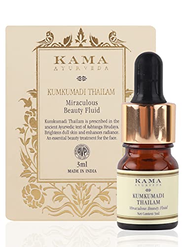 Kama Ayurveda Kumkumadi Thailam is an authentic ayurvedic formulation that contains a blend of natural oils and herbs formulated to help skin appear youthful and radiant. It is prescribed in the ancient Ayurvedic text of Ashtanga Hrudaya as an essential beauty treatment for the face. Clinically proven to brighten & illuminate skin and delay signs of ageing this treatment has pure Kashmiri saffron Kumkuma that helps give your skin an everlasting natural glow. Clinically Tested * to: ¢oo 2.5 X improvement in Skin Brightening ** in just 4 weeks ¢oo 20% Reduction in Pigmentation in 28 days* ¢oo 15% reduction in Wrinkles in 28 days* ¢oo 100% of the panel showed improved skin brightening & hydration* *Based on clinical trials conducted over 28 days **x represents skin conditions before product usage Extracts of Indian Madder helps tone skin & reduce early signs of ageing. Vetiver and Lotus extracts help calm and cleanse the skin while Liquorice extracts help protect & improve skin texture. With the goodness of pure ingredients this ayurvedic formulation also provides intensive hydration. The quality of these rare unadulterated products blended together is what makes Kama Ayurveda's Kumkumadi Thailam a miracle in a bottle.