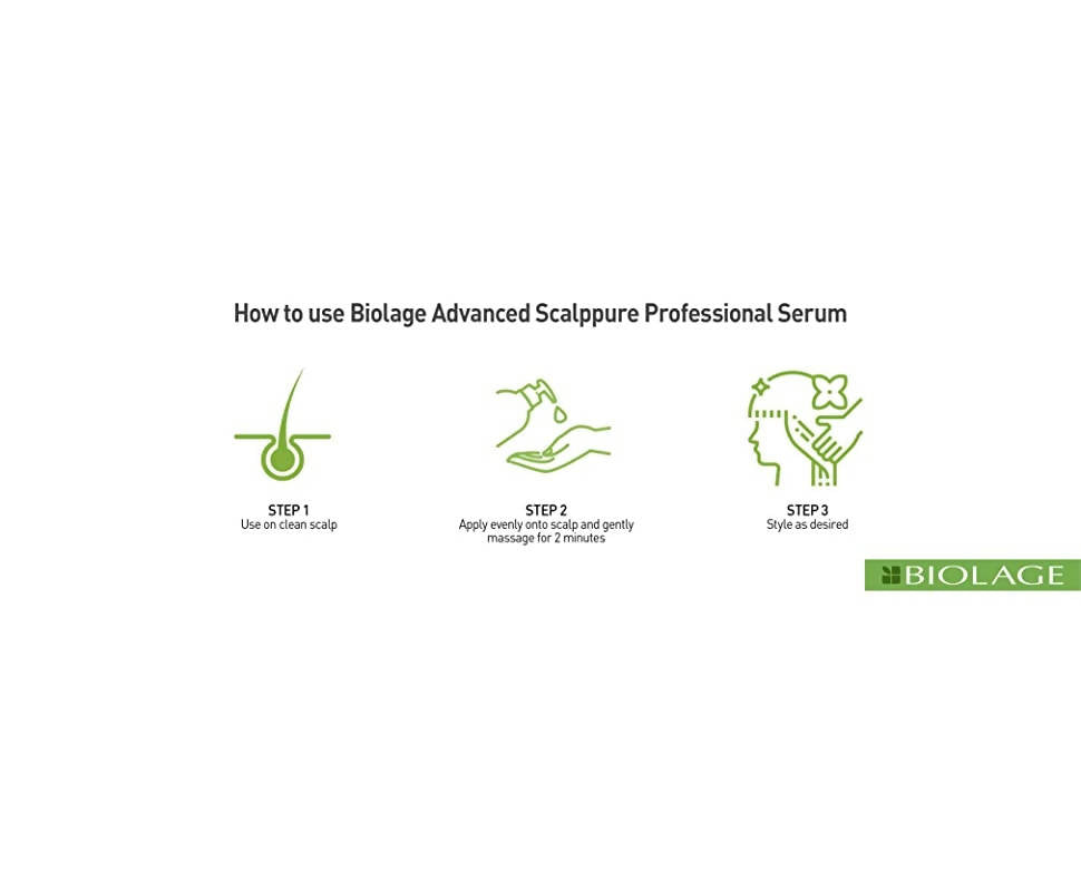 Matrix Biolage Scalppure Complete Solution Scalp SerumIs your hair looking frizzy, dull and dry? Revive your hair with the Matrix Biolage Scalppure Complete Solution Scalp Serum and make your hair soft and manageable. This formula is a one-of-a-kind serum that helps you with dandruff control. It also helps you control your flyaways and makes your hair manageable and smooth.Directions For Use:Cleanse and condition your hair with the Biolage Scalppure Shampoo and ConditionerTake a few drops of the serum into your palms and rub your palms together gently to warm up the product and spread it evenlyApply the serum from the mid-lengths to the tips of your hairStyle your hair as desiredLegal Disclaimer: Product images are for illustrative purposes only. Images/packaging/ labels may vary from time to time due to changes made b