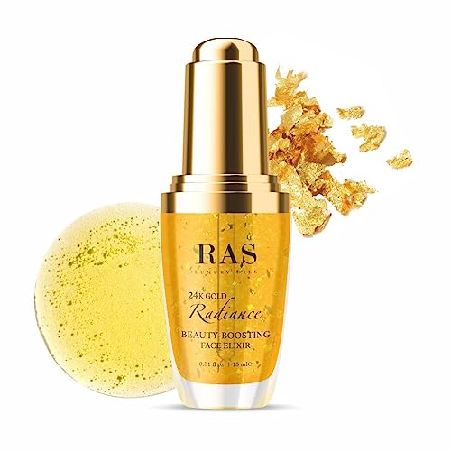 RAS Luxury Oils Radiance 24K Gold Brightening 8 in 1 Face Gel Serum Hydrates Skin & RAS Luxury Oils, 24K Gold Radiance Beauty Boosting Face Elixir Serum; Enriched With Vitamin C; Brightens Skin, Reduces Wrinkles, Improves Uneven Skin Tone, 15 ml & RAS Lux