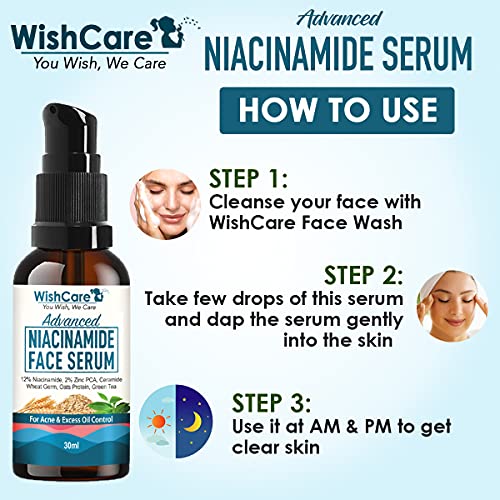 • PREVENTS ACNE & ACNE MARKS MINIMISE PORES: WishCare concentrated serum is formulated with high qyality 12% niacinamide and 2% zinc PCA that help improve uneven skin tone and visually minimize the look of pores skin texture and fine lines.