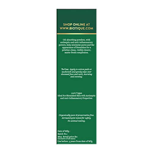 Biotique Tea Tree Face Toner 120ml Oil-absorbing powders with antiseptic and anti-inflammatory powers. It helps minimize pores and the appearance of blemishes for a pristine-clean visibly clearer and matte-fresh complexion.