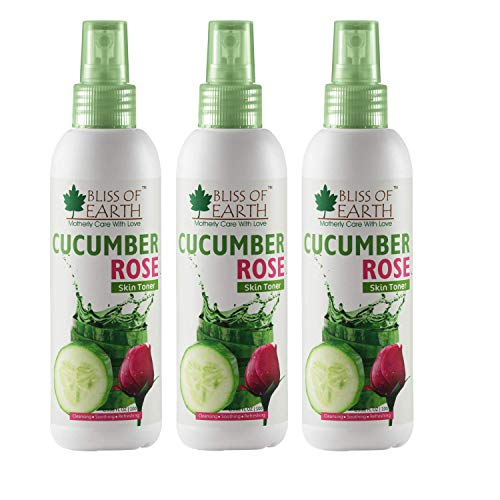 Bliss of Earth Cucumber Rose Skin Mist Toner | Facial Mist | 3x100ML | Refreshing & Clarifying | Pore Minimizing & Soothing|