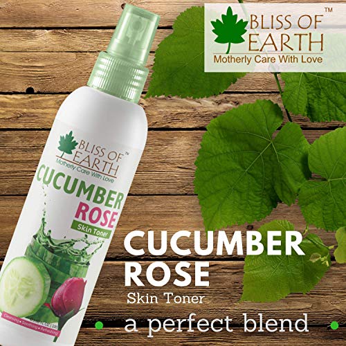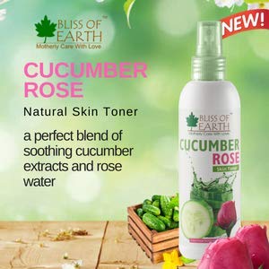 Craving for one? Well here it is Bliss of Earth Cucumber Rose Toner/Facial Mist. Laden with both these power-packed skin-loving natural ingredients that enchant and energise rejuvenate and rev up amaze and awe at the same time our au naturel cruelty-free and 100% handmade toner/facial mist helps balance your skinopH level tighten skin close pores (to prevent entry of dirt bacteria dust pollutants grime etc.) hydrate skin and impart an overall glowing and supple complexion. With sensual notes of rose your mind will be transported to a rose garden a fully blooming one at that. Cucumber is unparalleled when it comes to healing your parched sun burnt skin like no other ingredient. Indulge your skin and senses in a joyride youd never want to end with Bliss of EarthoCucumber Rose Toner/Facial Mist a few sprays of which are sure to get you hooked to this wondrous potion.