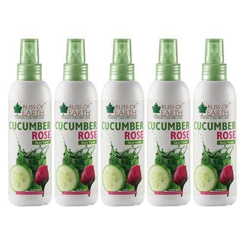 Bliss of Earth Cucumber Rose Skin Mist Toner | Facial Mist | 5x50ML | Refreshing & Clarifying | Pore Minimizing & Soothing |