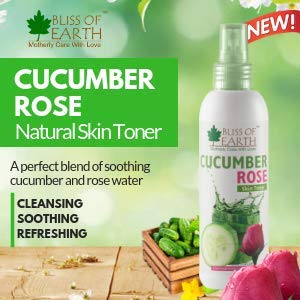 Craving for one? Well here it is Bliss of Earth Cucumber Rose Toner/Facial Mist. Laden with both these power-packed skin-loving natural ingredients that enchant and energise rejuvenate and rev up amaze and awe at the same time our au naturel cruelty-free and 100% handmade toner/facial mist helps balance your skinopH level tighten skin close pores (to prevent entry of dirt bacteria dust pollutants grime etc.) hydrate skin and impart an overall glowing and supple complexion. With sensual notes of rose your mind will be transported to a rose garden a fully blooming one at that. Cucumber is unparalleled when it comes to healing your parched sun burnt skin like no other ingredient. Indulge your skin and senses in a joyride youd never want to end with Bliss of EarthoCucumber Rose Toner/Facial Mist a few sprays of which are sure to get you hooked to this wondrous potion.