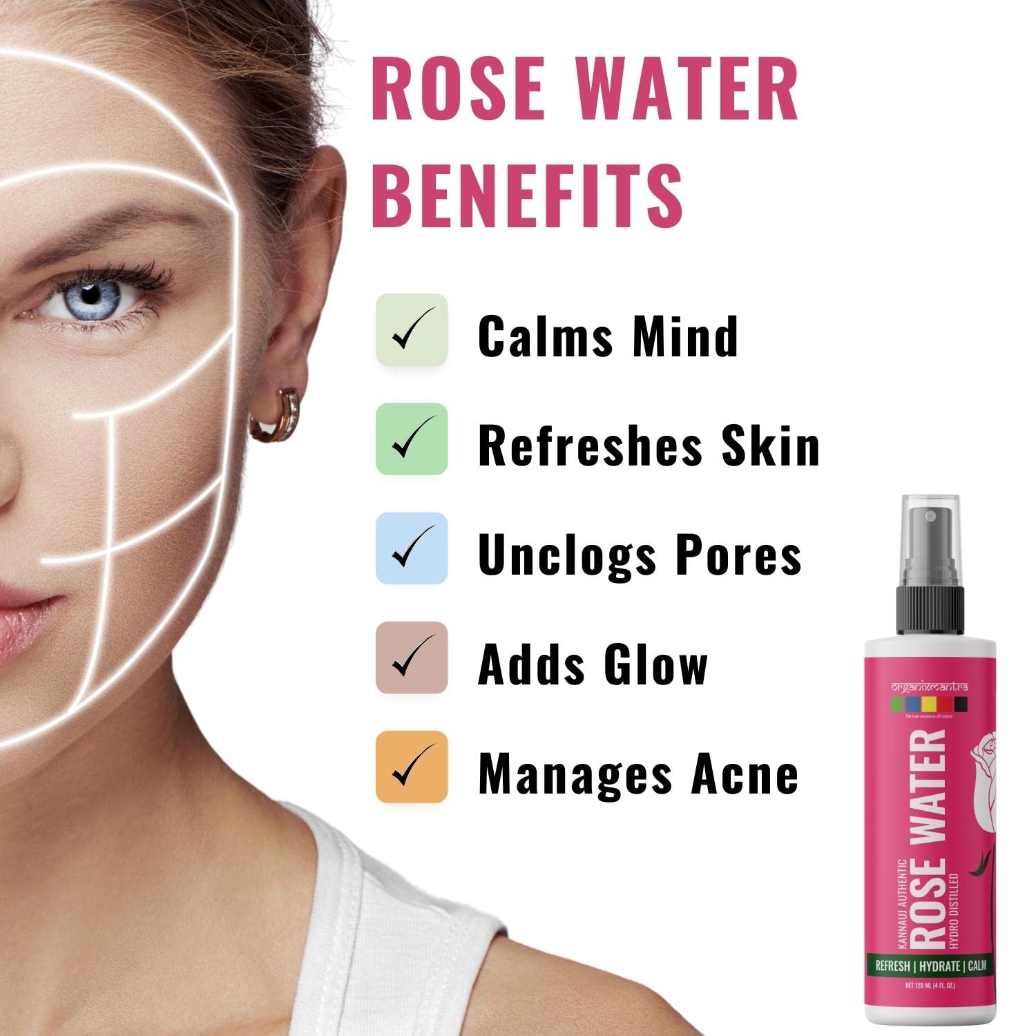 Kannauj Rose Water is extracted from the roses grown in Kannauj region is 100 % pure and is suited for all skin types - acne prone dry oily and combination. Using this Rose Water on acne prone skin helps manage acne breakout by balancing the oil secretion of the skin helps the redness and soothe the inflamed skin while on a dry skin it helps retain the moisture to keep the skin hydrated. Regular usage makes the dull skin radiant as it revitalizes and s the skin cells to give a fresh feel and look. Rose Water is known to seal the moisture to and tighten the pores to keep the skin hydrated and give . Spritzing Rose Water on the scalp and giving it a good massage may help to help manage dandruff itchy and flaky scalp. Similarly rinsing your hair with Rose Water after shampooing is known to give an ed shine to the lacklustre hair. Regular usage helps promote hair growth strengthen hair strands and tame frizziness.