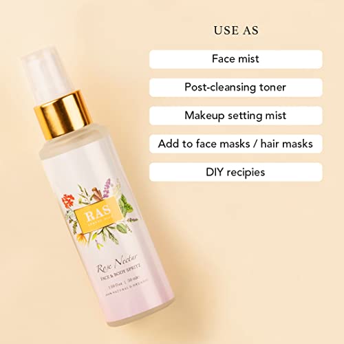 RAS Luxury Oils Rose Nectar Face & Body Spritz Toner | Alcohol Free Face Mist | Enriched With Rose, Lavender & Geranium | Soothe Skin, Balance Skin's pH level & Brighten and Refresh your skin | 50ml