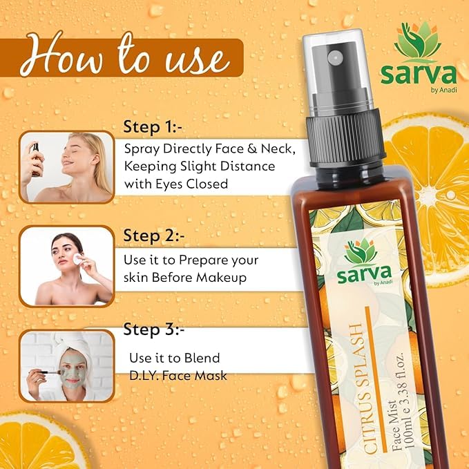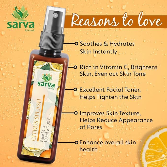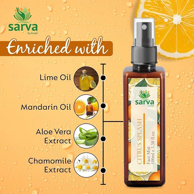 Sarva By Anadi Citrus Splash Face Mist for Glowing Skin | 100% Pure Nourishing Refreshing & Hydrating | Mandarin Lime Niacinamide Vitamin C | Alcohol & Parabens Free | Each 100 ML Pack of 2