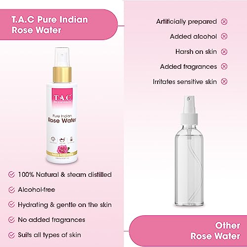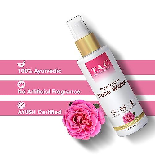 T.A.C Pure Indian Rose Water For for Hydration & Glowing Skin, Alcohol Free, 100% Ayurvedic for Women & Men, All Skin Types, 100ml