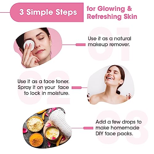 • Tones & Minimizes Pores: Rosewater effectively unclogs the pores and removes all the dirt and grime from them. It provides an even-toned skin and minimizes pores that lead to controlled oil production in the skin.