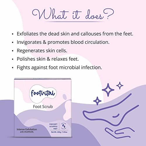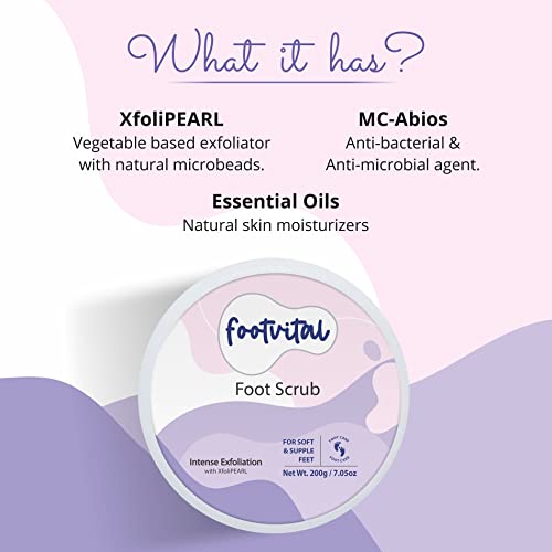 Footvital Foot Scrub with Eco Friendly Exfoliating Beads Xfolipearl & Sweet Almond Oil for Skin Cells of Dry & Calloused Feet Softens Rough Heels for Pedicure - 200 GM