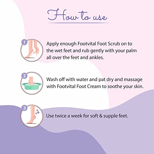 POWERFUL EXFOLIATOR: Footvital Foot Scrub comes up with powerful exfoliating granules an alternative to plastic microbeads. It exfoliates the feet gently with low perception of abrasiveness. It offers a great advantage for rough dry & cracked heels.